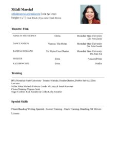 February 24, 2024 Posted by Brian Sedita 0 0 Acting Resume Zitlali Marcial Leave a comment Click here to cancel reply Cancel Reply Save my name, email, and website in this browser for the next time I comment. Please wait... Post Comment